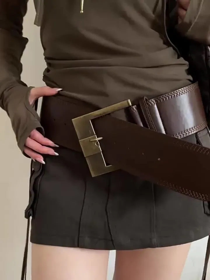 RETRO PU LEATHER BELT — WIDTH 7.5 CM WITH METAL BUCKLE